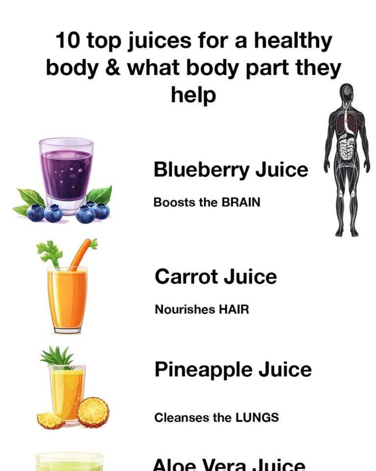 Here’s a detailed guide to 10 top juices for a healthy body and the main body parts or systems they support: