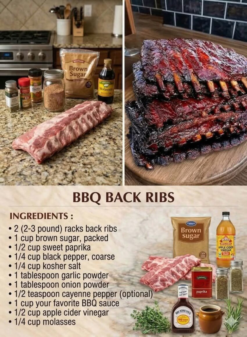 Here’s a delicious recipe for BBQ Back Ribs that’s tender, flavorful, and perfect for grilling or baking:
