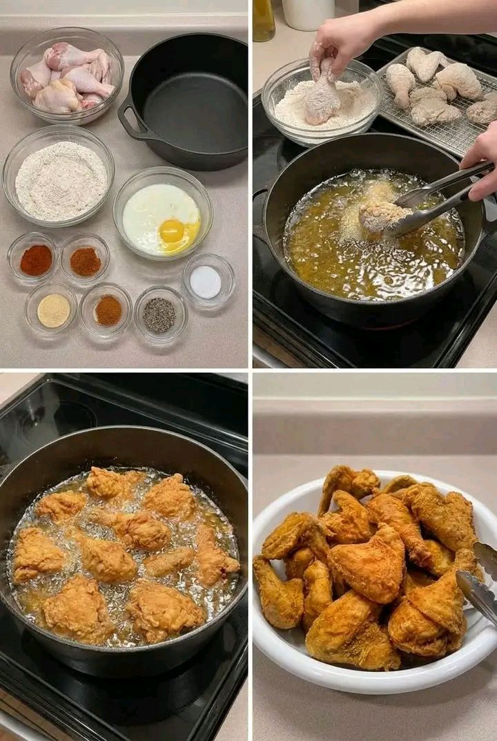 Here’s a detailed recipe for Homemade Crispy Fried Chicken—crispy on the outside, juicy on the inside.
