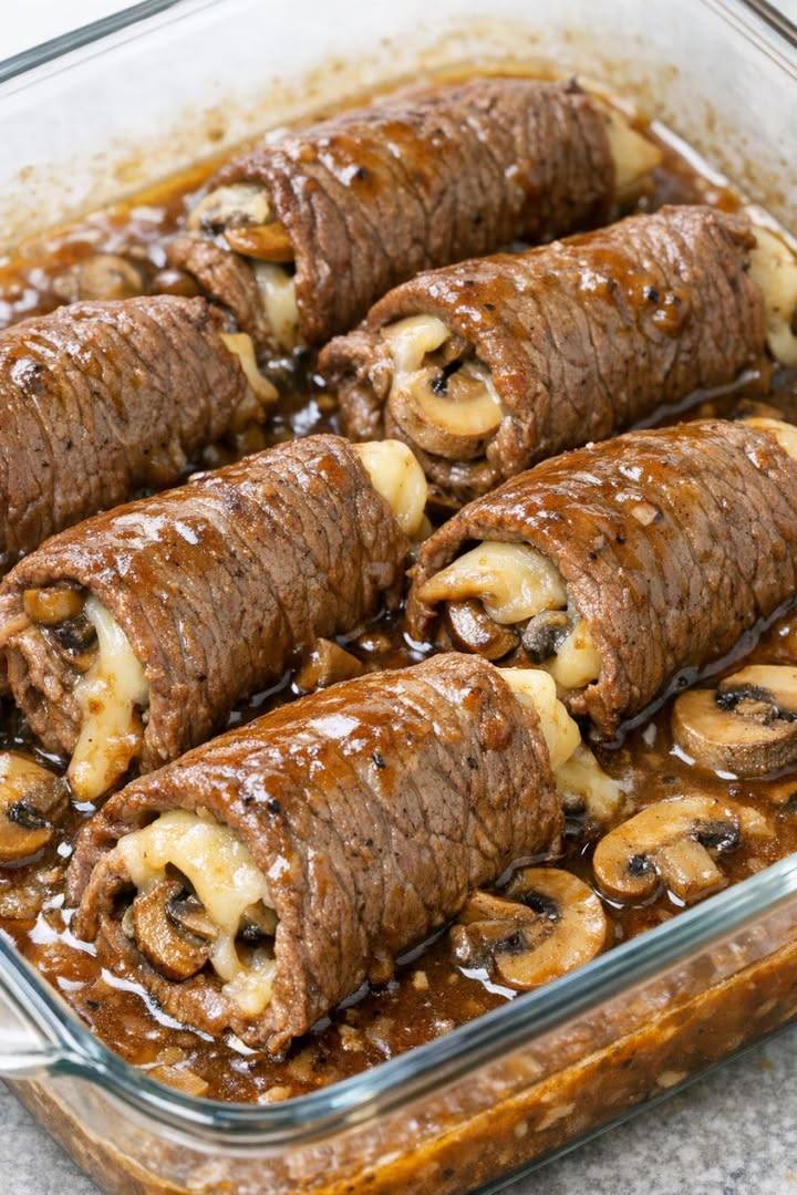 Here’s a delicious, hearty recipe for Oven-Baked Mushroom Swiss Steak Rolls—tender beef rolled with Swiss cheese and mushrooms, perfect for a comforting dinner.