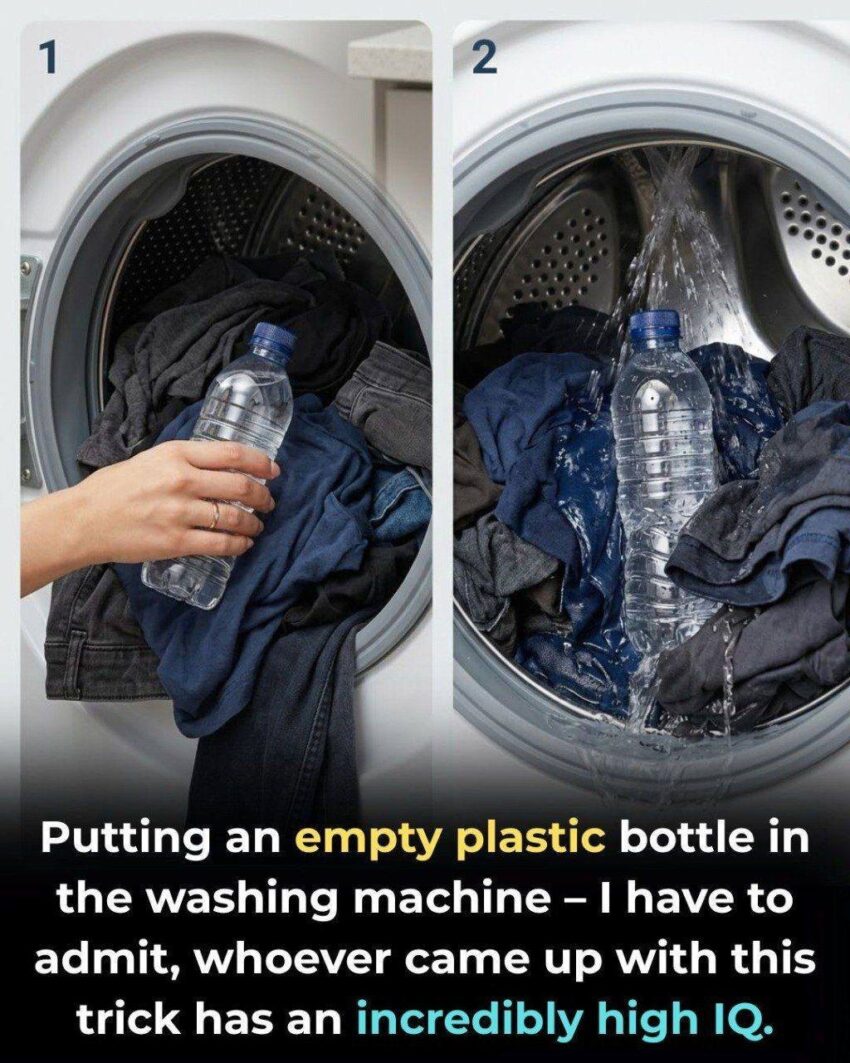 -Putting an empty plastic bottle in the washing machine – I have to admit, whoever came up with this trick has an incredibly high IQ.