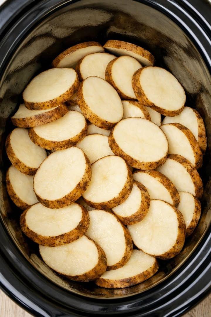 - Place potatoes in the slow cooker.
