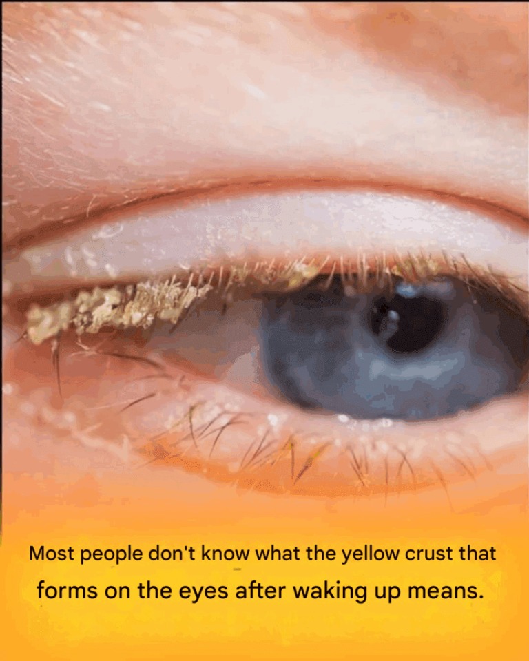 Waking up with yellow crust around your eyes or eyelashes is usually related to your eyes and eyelids, and in most cases, it’s not serious, though it can indicate something is going on. Here’s what it could mean: